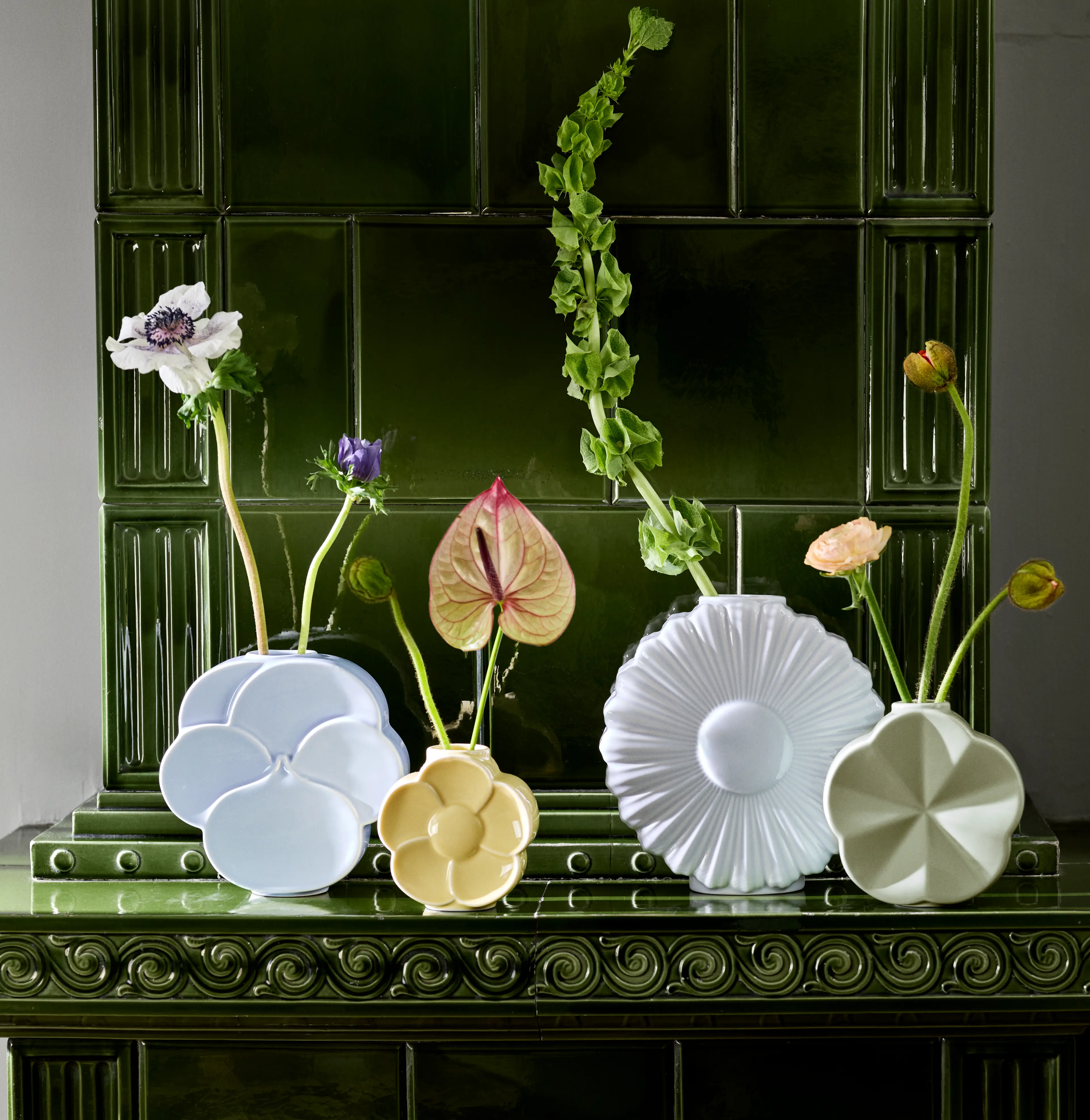 Bag formgivningen står den danske keramiker Marianne Nielsen, der med sit legende og skarpt sansede blik for den unikke i materialet har skabt fire vaser – hver inspireret af en særlig blomst: marguerit, stedmoderblomst, snerle og smørblomst.